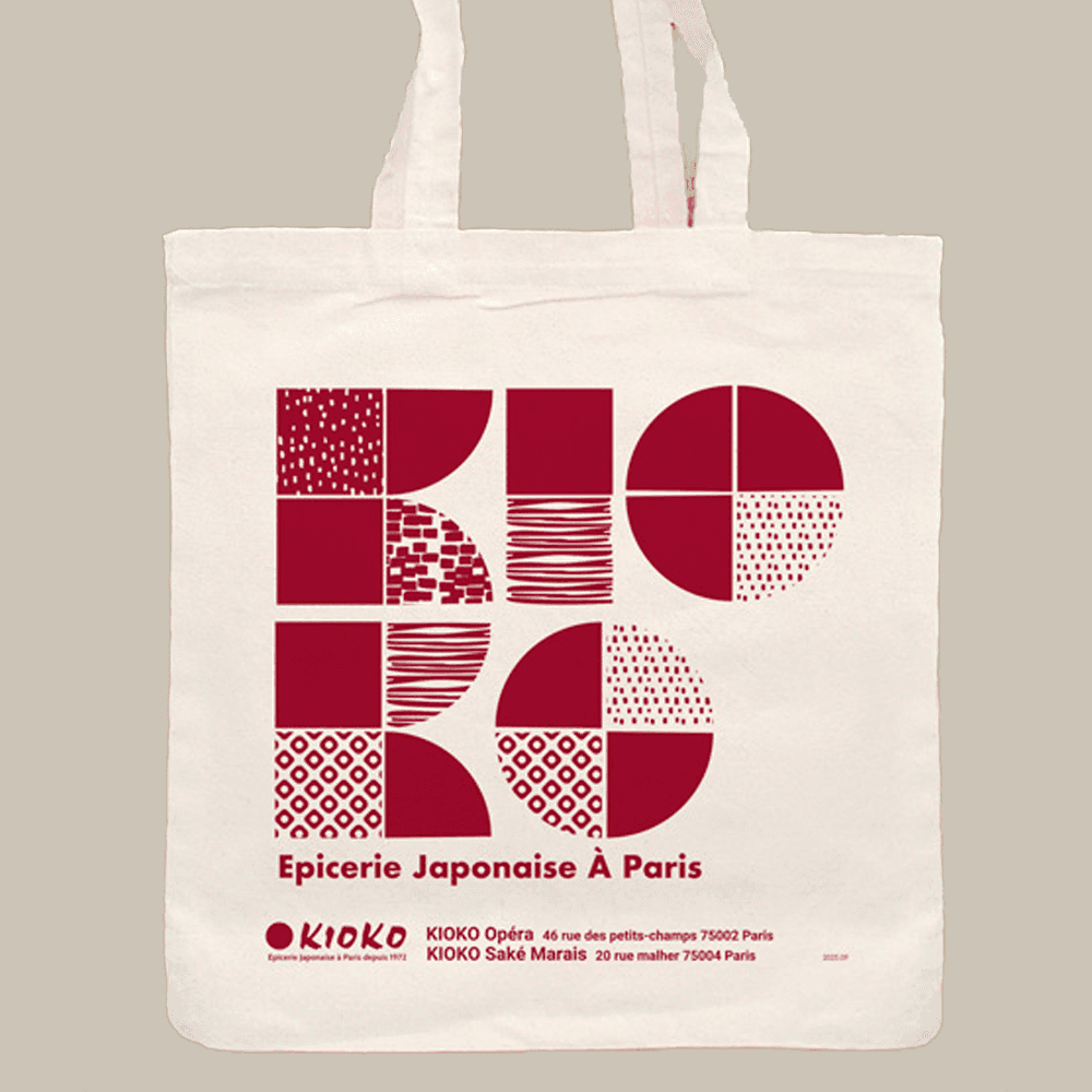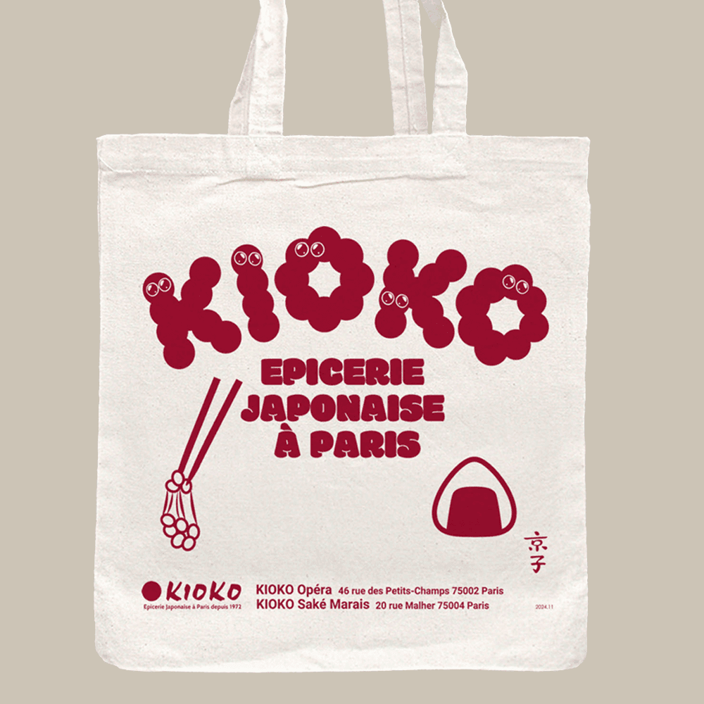 A 1.5 Euro cotton bag designed as a recurring item for customers who forget their bags or want a souvenir.
