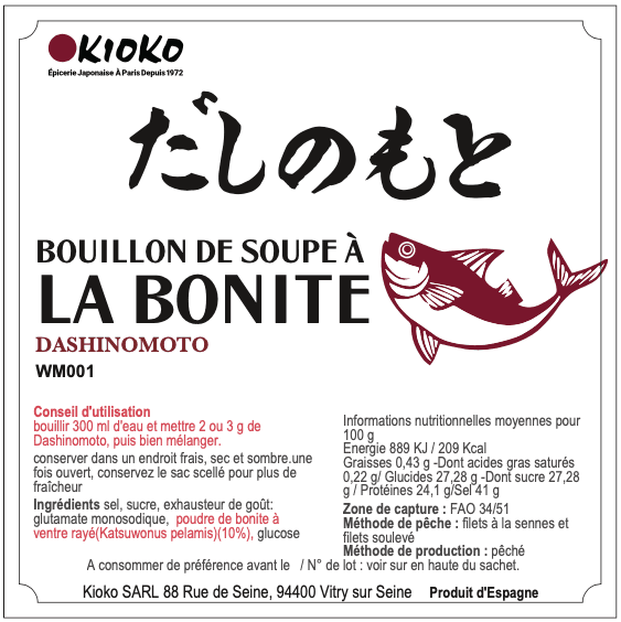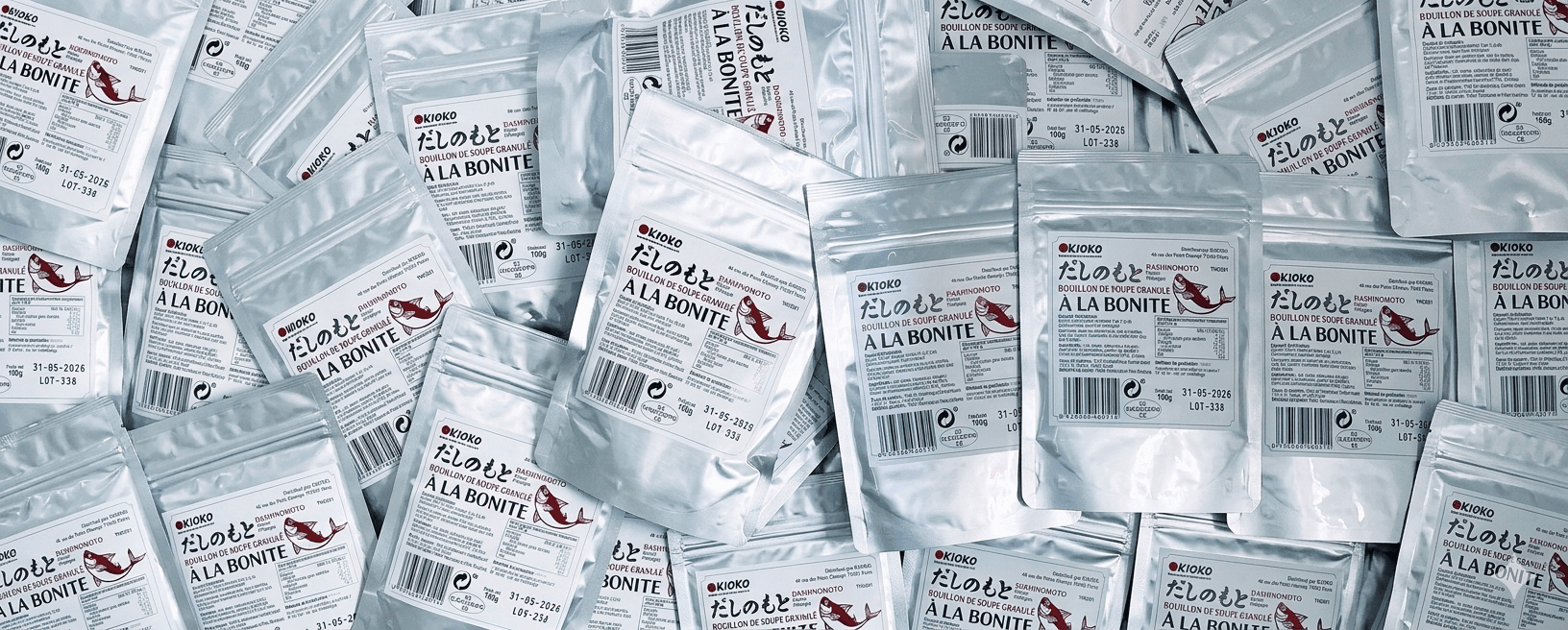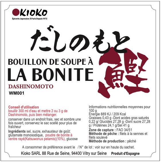 Designed private brand (oem) packaging for premium bonito dashi, aiming for an authentic and high-quality feel.